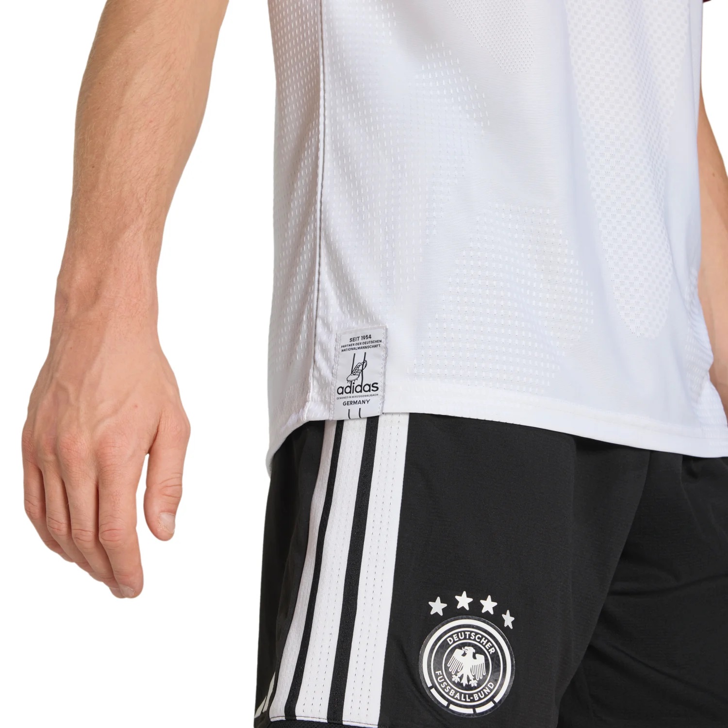 When it comes to football, the Germany 26 Home Jersey is a symbol of heritage and innovation. Drawing inspiration from iconic moments, this jersey is designed to be the icon of tomorrow. This jersey is crafted with Climacool+ technology. Advanced cooling. With Climacool+ technology, superior engineering and advanced materials unite for a cool, dry, and distraction-free performance. Crafted with precision, the jersey features a contrast colour collar and EQT collar with tape, adding a touch of style to your game. The sweat-wicking materials are strategically placed in high sweat zones, helping you feel comfortable throughout the match. adidas branding is subtly integrated with lenticular heat transfer logos and perforated 3-Stripes tape, showcasing the brand's commitment to quality and design. Get ready to make a statement with this cool piece.