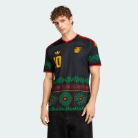 Celebrate the spirit of reggae music with the Jamaica 26 x Bob Marley Away Jersey. Inspired by Bob Marley's legacy and designed for on-field match usage, it combines performance with cultural expression. Cool. Dry. Ready. The jersey features adidas' Climacool technology. Climacool wicks and disperses sweat for a cool, dry and distraction-free performance. The ribbed crew-neck collar adds a touch of classic style, while the slim fit offers a modern silhouette. Crafted from doubleknit fabric, this jersey is not only stylish but also practical, making it a must-have piece for a football enthusiast looking to celebrate Jamaican heritage.