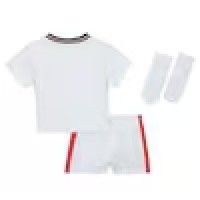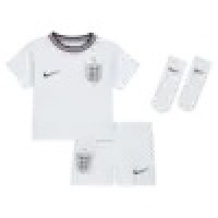 The Home kit is grounded in the heritage of English football, reasserting the iconic all white look while elevating it with modern expression. Subtle iconography inspired by England's football culture is engineered directly into the fabric, creating depth without overwhelming the classic silhouette. A metallic gold star above the crest replaces the traditional tonal execution. The Home kit feels familiar yet newly assertive — honouring history while signalling England's reawakening on the global stage.