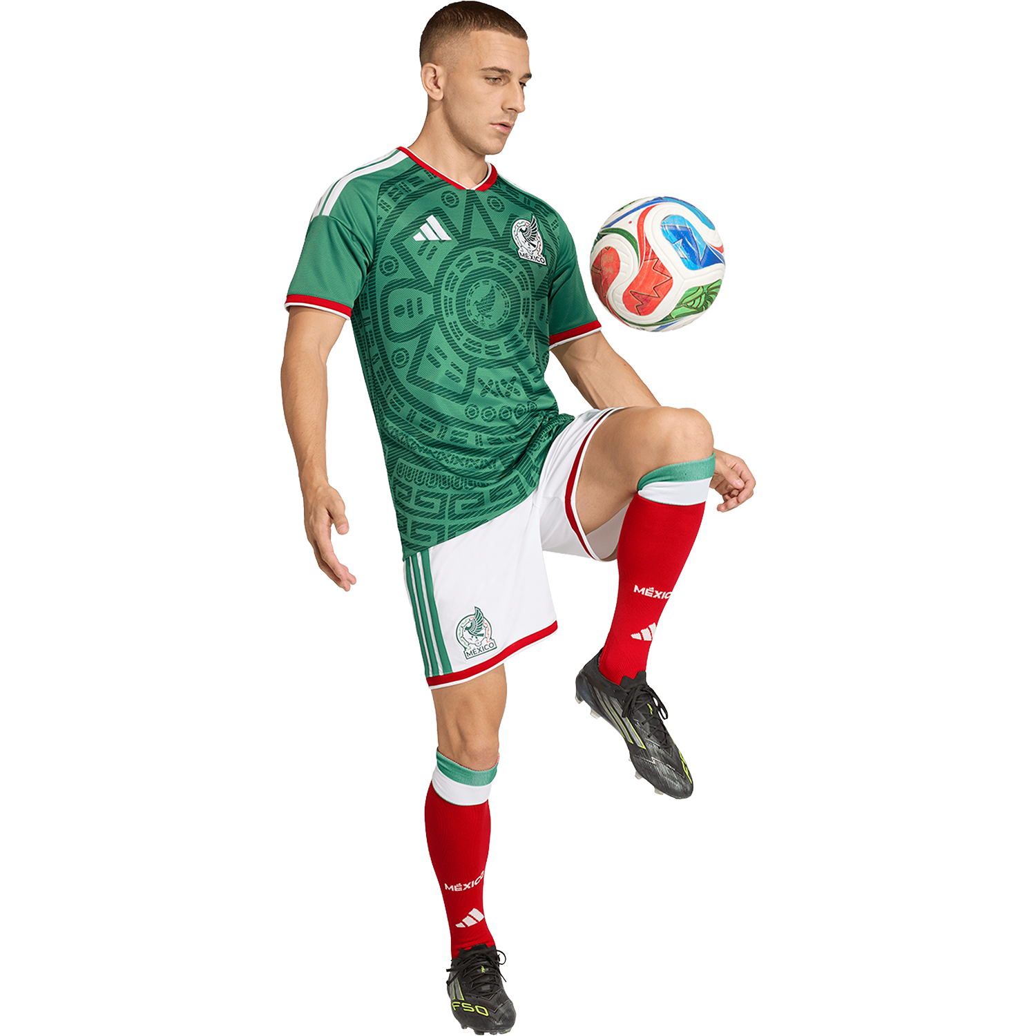 The Mexico 26 Home Replica Shorts are more than just a piece of apparel; they're a symbol of pride and passion for Mexican football fans. Crafted for those who live and breathe the beautiful game, these shorts are designed to make a statement on and off the pitch. Cool. Dry. Ready. Climacool wicks and disperses sweat for a cool, dry, and focused performance. The interlock construction provides durability and a smooth feel against the skin, making them suitable for long hours of play. With a fully elasticised waistband, they offer a comfortable fit that moves with you, helping you stay ready for action. Whether you're cheering from the stands or playing on the pitch, these shorts are your go-to choice for showing support. Authorized reproduction by Instituto Nacional de Antropología e Historia, “REP.AUT.INAH”.