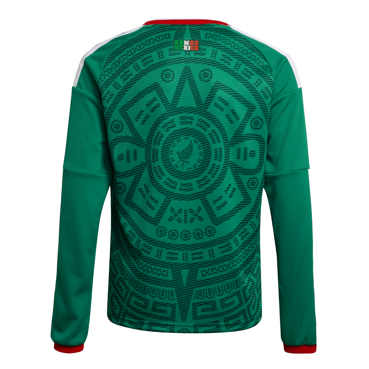 Somos Mexico. Honour the past. Dominate the future. Let your child unleash their pride with the Mexico 26 Home Kids Long Sleeve Jersey. Featuring an all-over print graphic inspired by iconic symbols, this jersey channels the strength, rhythm, and resilience of a culture that shaped a nation. The jersey is crafted with Climacool technology. Cool. Dry. Ready. Climacool wicks and disperses sweat for a cool, dry, and focused performance. The jersey is crafted with double-knit fabric that provides durability. With a regular fit, the jersey provides a balance of comfort and style during playtime, school activities, or sports practice. The adidas logo and 3-Stripes finish the look with a touch of authenticity. An iconic kit with tonal patterns, and the Mexican crest proudly placed over the heart, this jersey represents a fusion of tradition and modern football excellence. Authorised reproduction by Instituto Nacional de Antropología e Historia, “REP.AUT.INAH”.