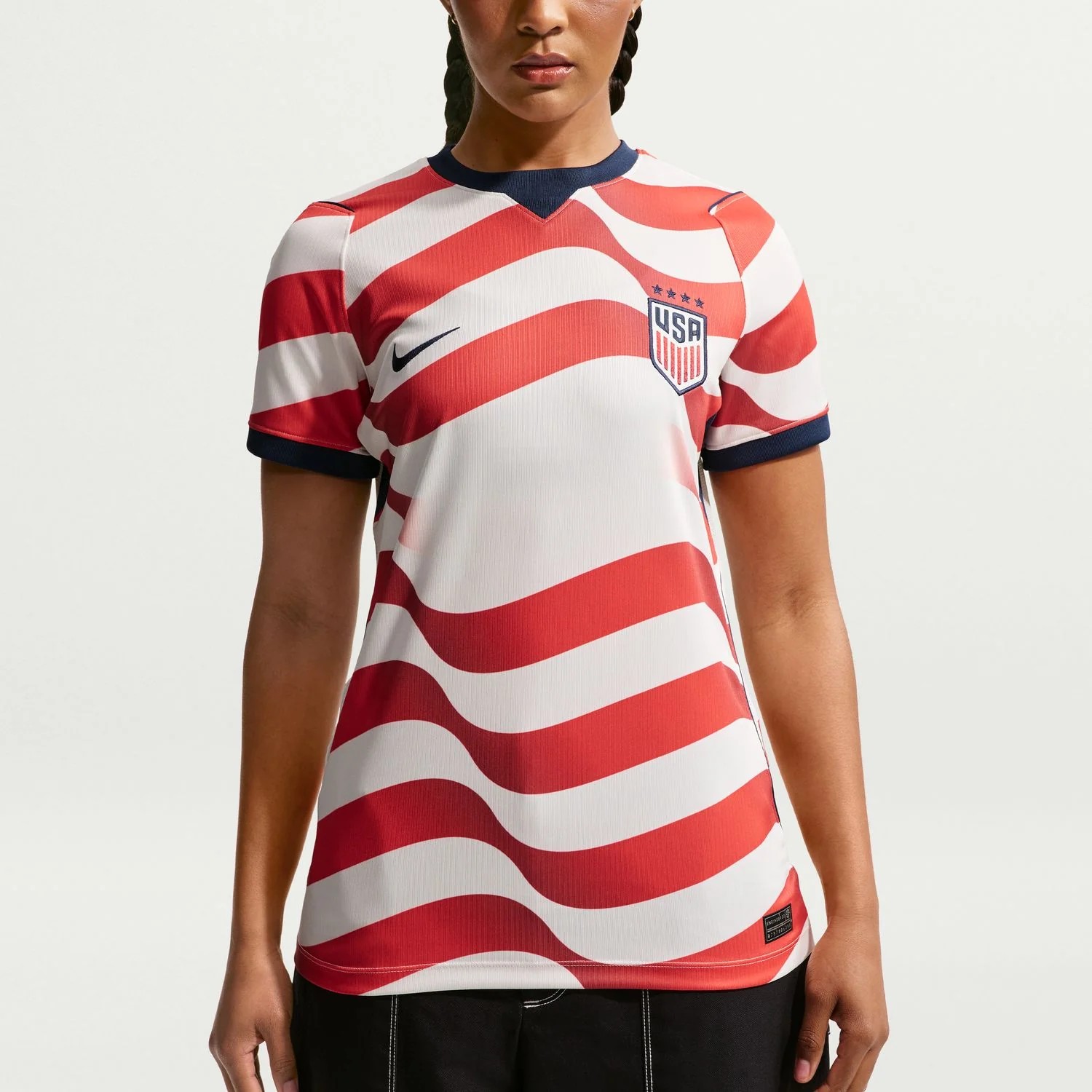 United in stripes. A symbol of both the team and country’s diversity, the U.S.A.’s home jersey features wavy, gradient stripes, nodding to a team united in movement and progress.